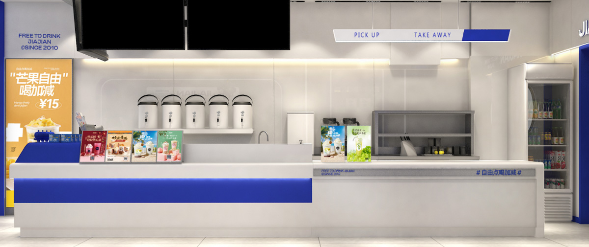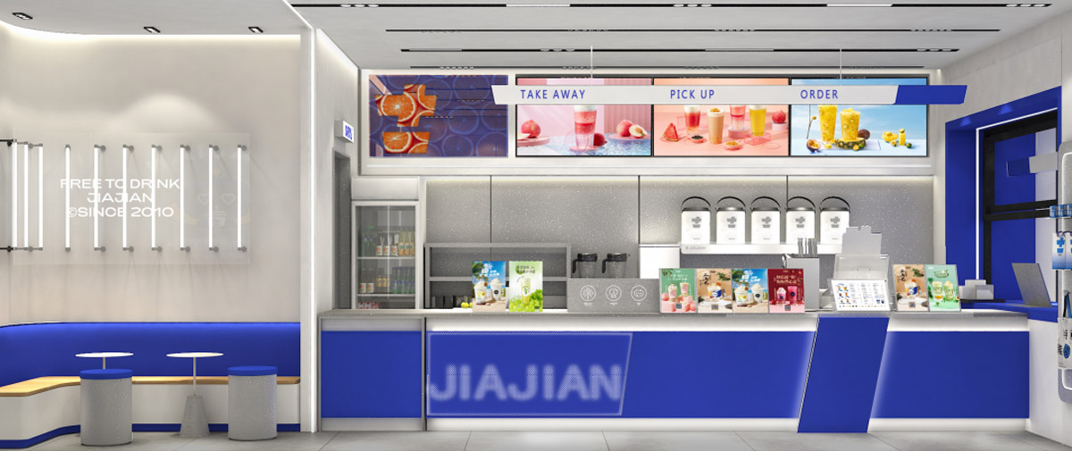 球王会先后进行4次门店形象升级。全新第5代门店形象以简洁的设计风格及多样的装潢理念呈现新概念茶饮品牌风貌。